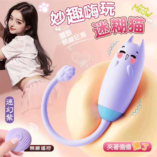 來樂 LILO 迷糊貓 ‧ 無線遙控~妙趣嗨玩 - 10段變頻強震/親膚矽膠/USB充電/迷幻紫