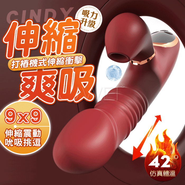 Cindy.9x9打樁式伸縮衝擊液晶顯示按摩棒 -仿真體溫 吸力升級