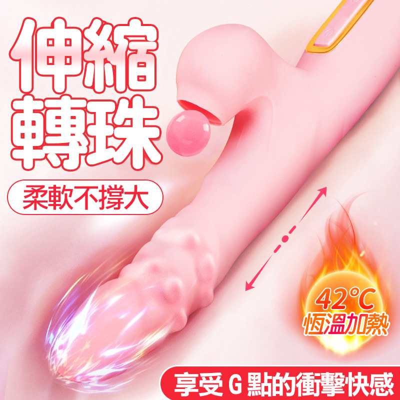 愛悅.7x12變頻伸縮拍打轉珠震動伸縮電動按摩棒- 粉色