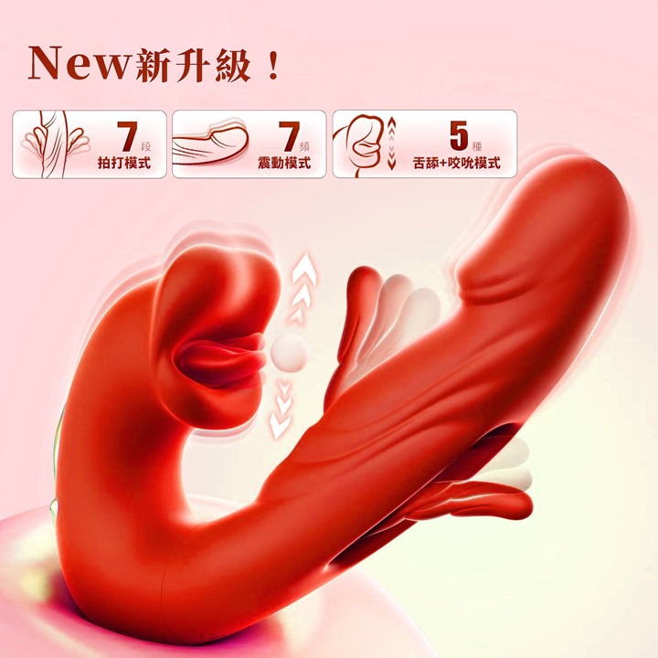 口愛神器 舌舔咬吮拍打摳動自慰棒 多功能G點按摩棒 - USB磁吸式充電