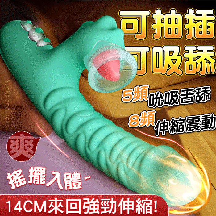 恐龍真吸棒.8頻伸縮震動5頻G點吸吮搖擺入體按摩棒-會抽插真吸舔