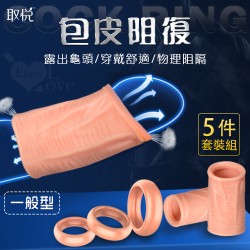 取悅 ‧ Cock Ring 包皮阻復5件套裝組 - 一般型﹝運動+日用+夜用﹞