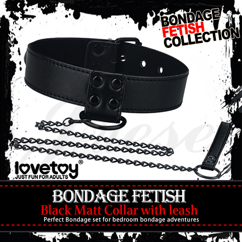 BONDAGE FETISH SM虐戀皮革鐵鍊頸環-黑