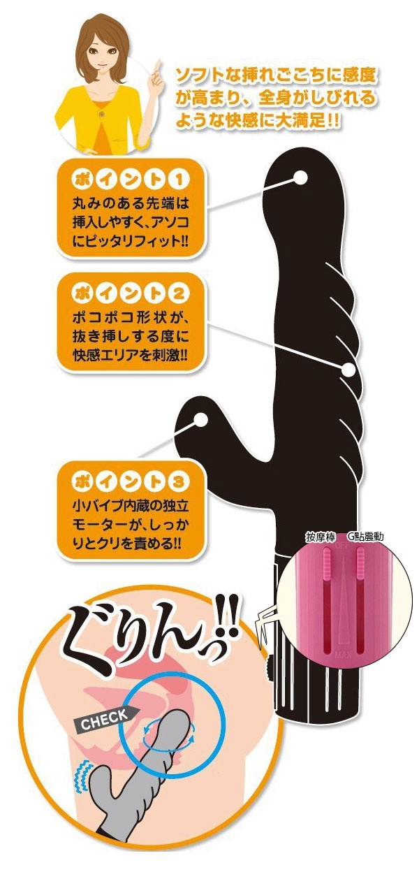 背面のデコボコ形状がさりげなく快感エリアを刺激。ツルツルの小バイブはクリとの高い密着感を生み、確実に刺激し続ける!無段階強弱切替え機能を搭載!! ■日本A-ONE 原裝進口,品質保證。 ■材質:矽膠 ABS塑料 ■顏色:黑色 ■電池:4號電池×3顆