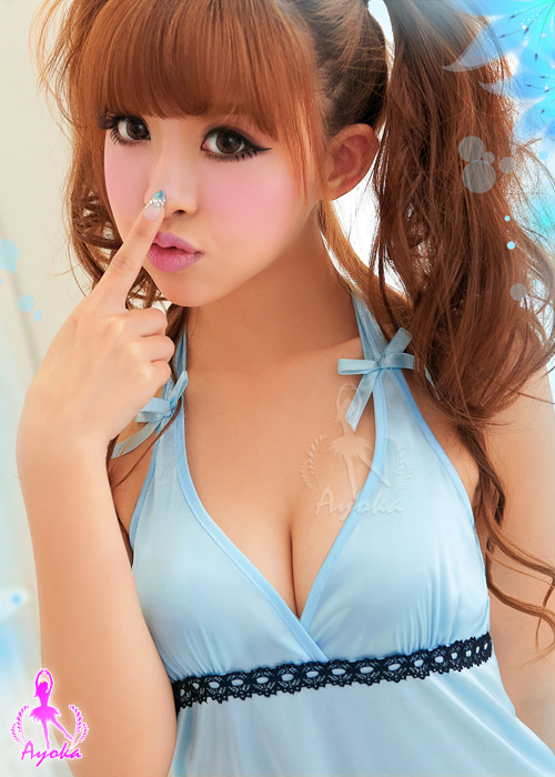 光澤感的淺藍色柔緞散發出女性的誘人特質~