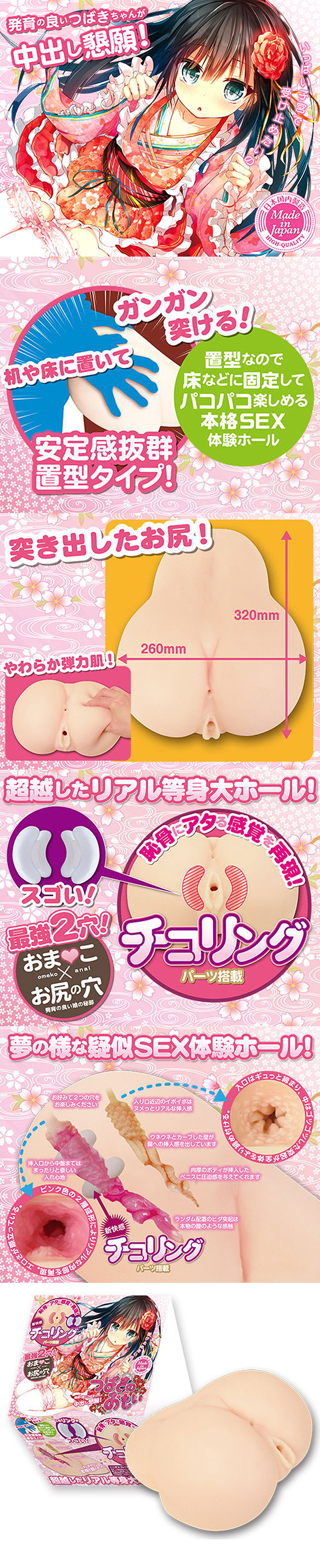 超越したリアル等身大ホール! 恥骨にアタる感覚を再現!「チコリング」搭載!! 置型なので床などに固定してパコパコ楽しめる本格SEX体験ホール