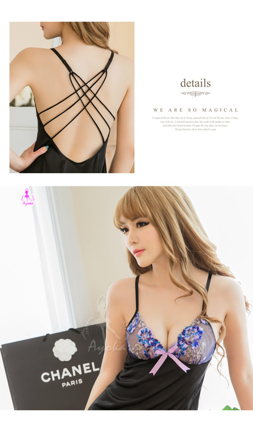 首頁>魅黑刺繡交叉美背柔緞睡衣