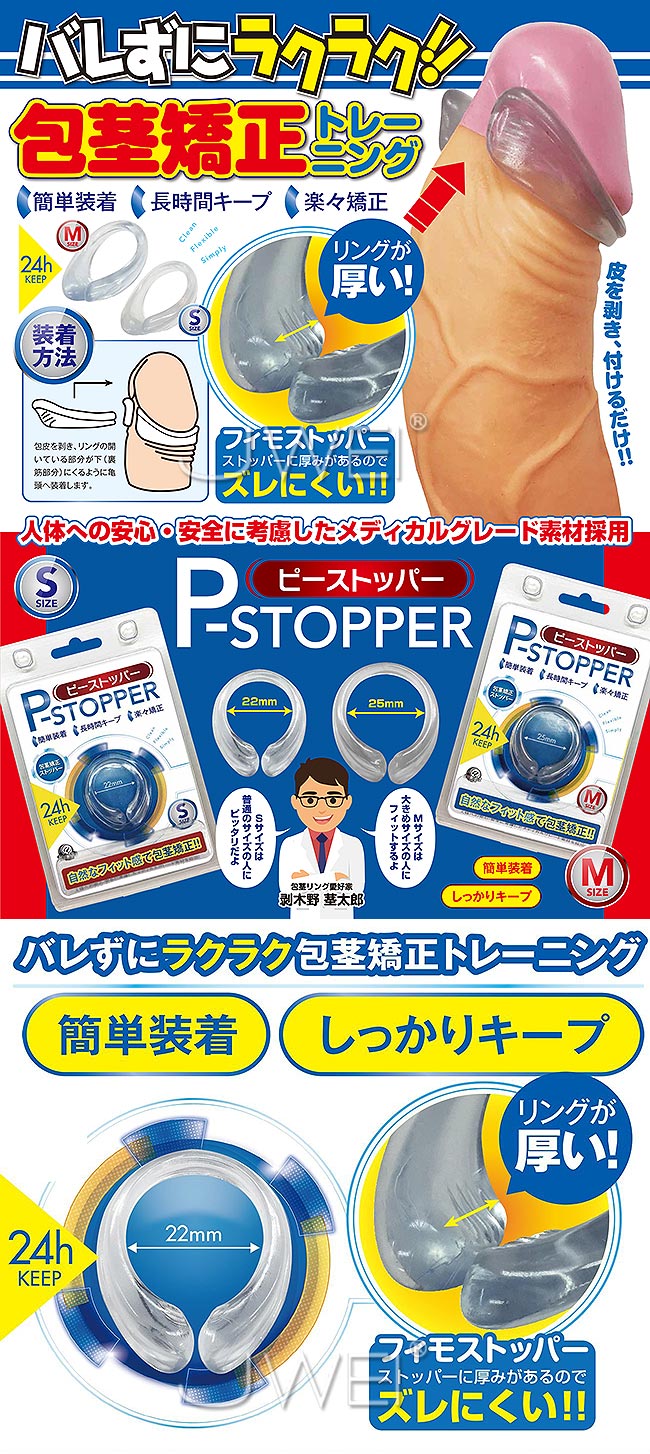 ►您現在的位置:首頁>日本原裝進口A-ONE.P-STOPPER 可長時間穿戴包莖矯正環(S-size)
