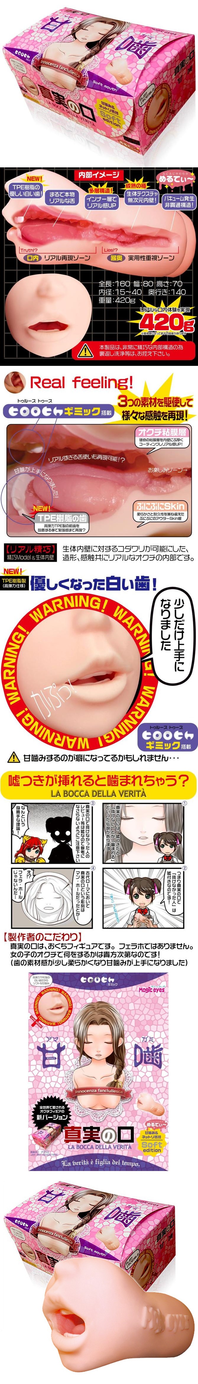 「例のホール」とまで言われるフェラホールとして人気の「真実の口」の甘噛みバージョン!肝となる歯をTPE素材を採用したリアルなフェラ感を再現したホール♪”
