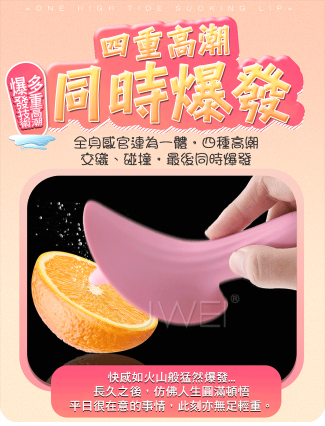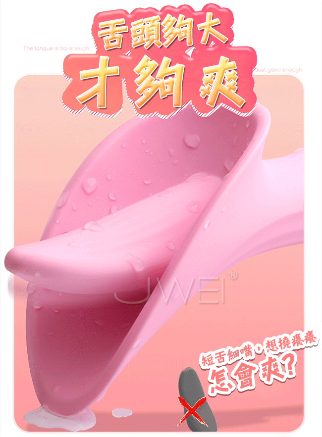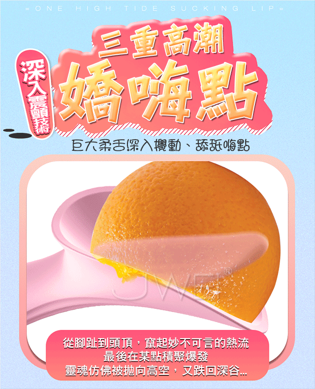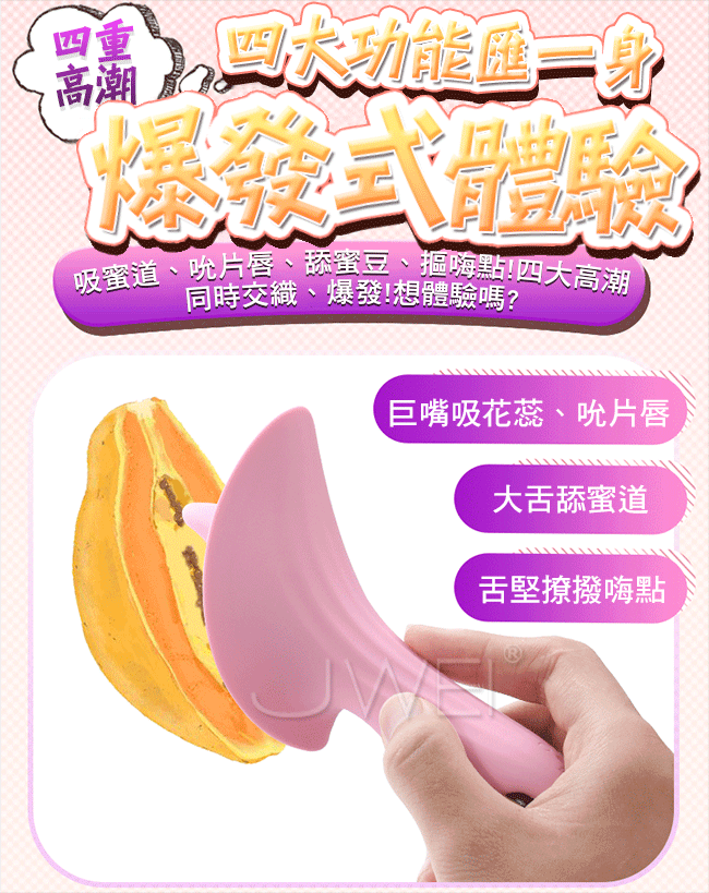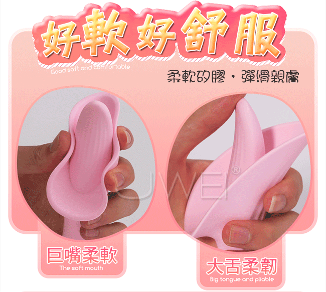 夢香給您巨嘴口愛新時代讓您告別單一高潮時代,吸蜜穴、吮片唇、舔蜜豆、摳嗨點!擁有四大高潮同時交織、爆發!還不來體驗嗎?並且採用一體成型防水設計,讓您不論是在泳池還是浴缸,都能隨時隨地縱享高潮,讓您清潔更容易!本產品10段變頻吸舔,花樣多、技術強,讓您驚喜連連!採用柔軟矽膠彈滑柔順,可放心使用不怕傷害嬌嫩的肌膚喔~