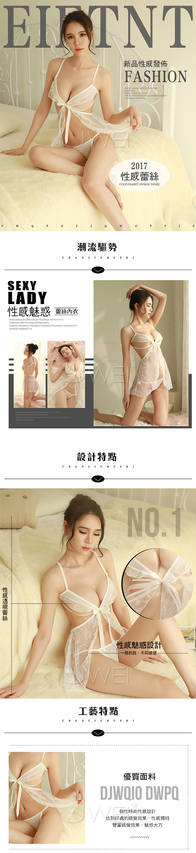 *╮讓妳舉手投足充滿自信與魅力╭* 衣身處開襟的設計展現女人窈窕曲線, 加上嵌合蝴蝶結的蕾絲鏤空設計 , 搭配背後卡扣設計,精工細作 讓愛人沉淪拜倒在你的裙下,