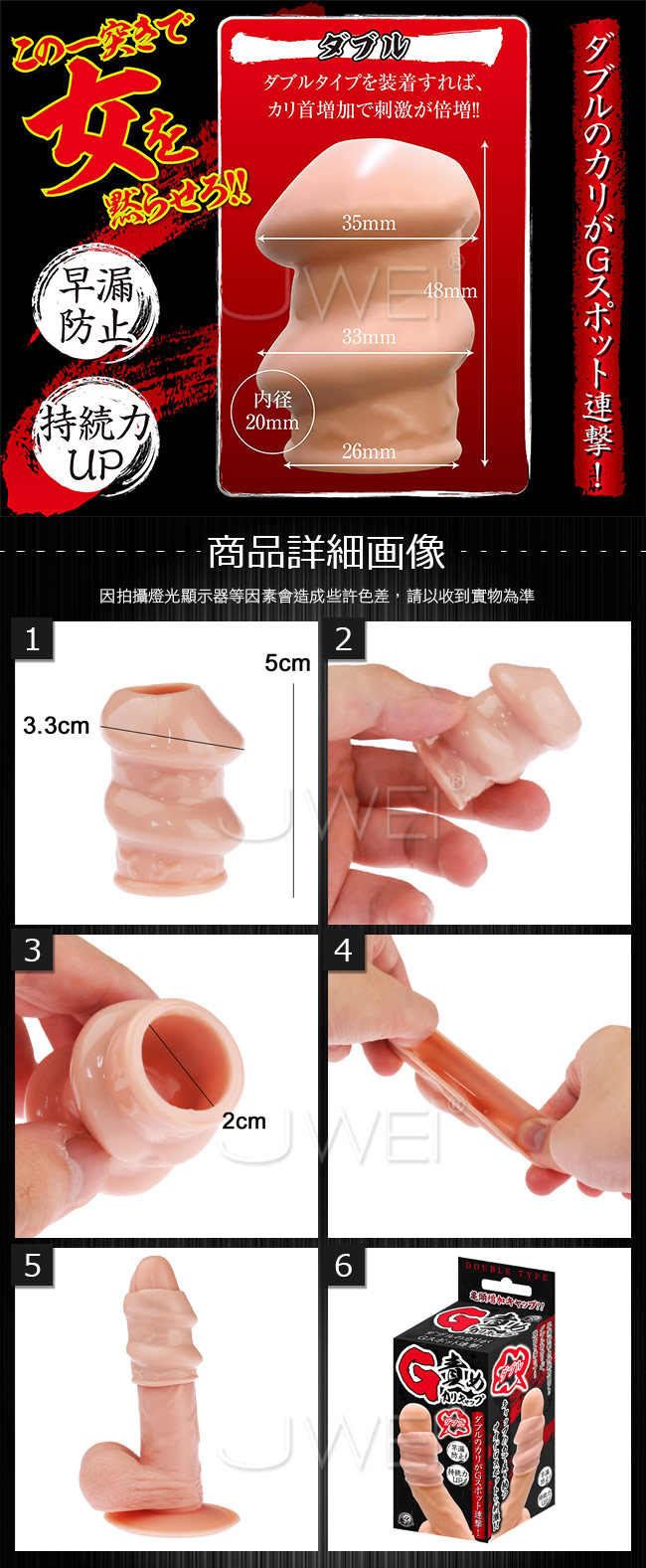 自身のカリクビを強化。Gスポットを刺激するカリキャップシリーズ。早漏抑制持続力アップ!!ダブルタイプを装着すればカリ首増加で刺激が倍増。膣内を満たし、情熱的な一突きで女を黙らせろ!!