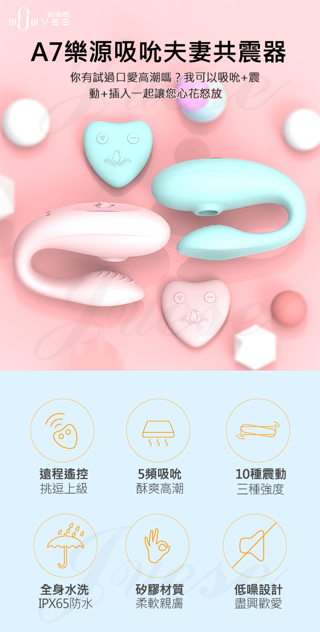 歐亞思.A7愛源 5種吸吮+10段變頻雙重高潮矽膠跳蛋-粉