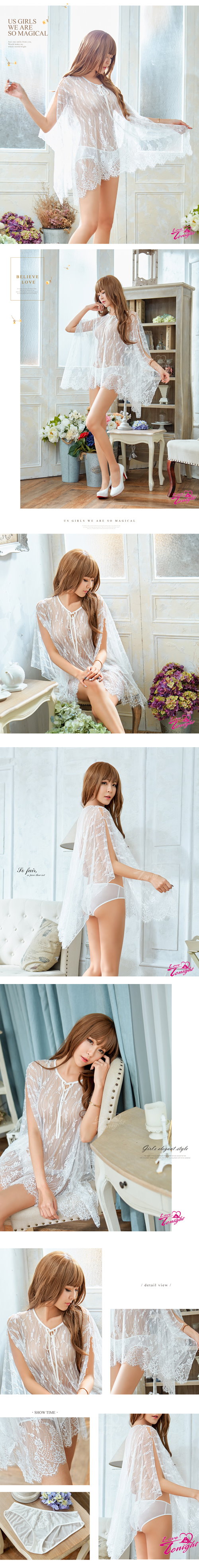 | 純白緹花蕾絲開衩二件式性感睡衣