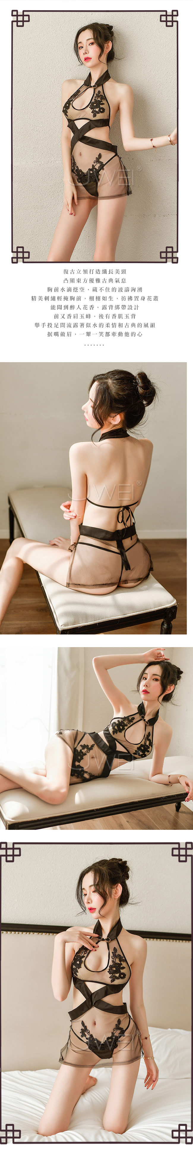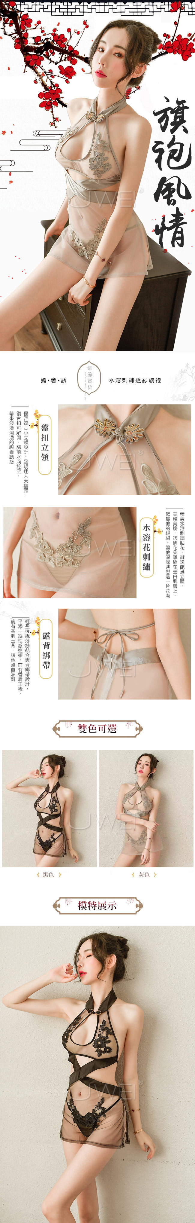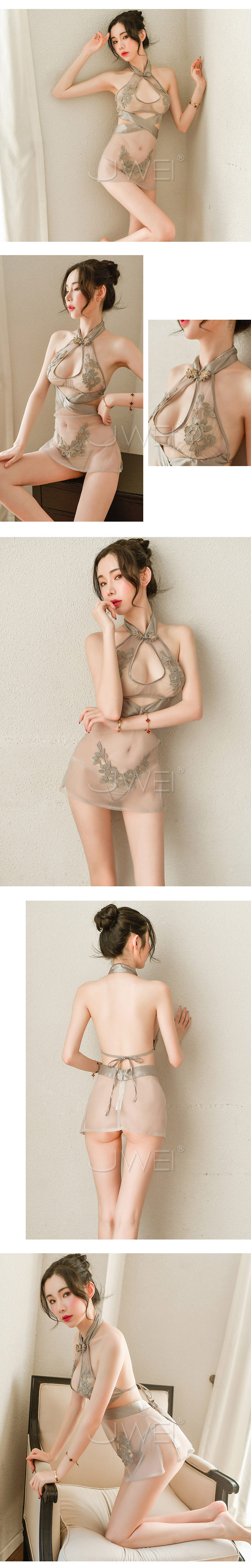 ◇◆儂情蜜愛.透視薄紗綁帶青樓旗袍套裝(銀灰色)◆◇