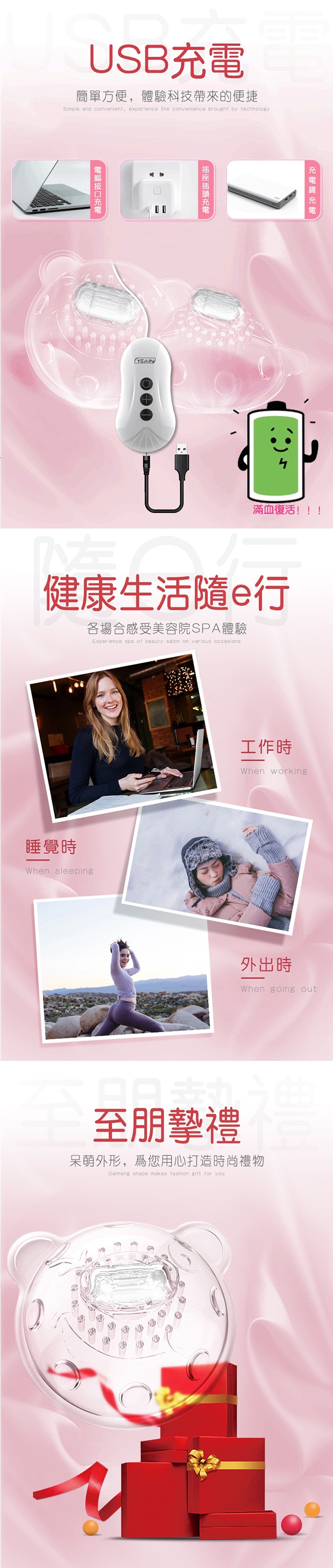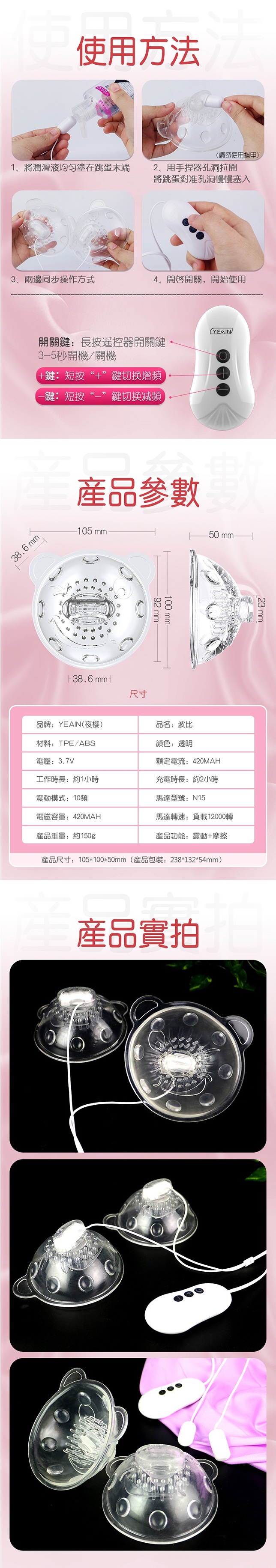 | 波比10V強震麻頻乳房按摩器-透明/粉色