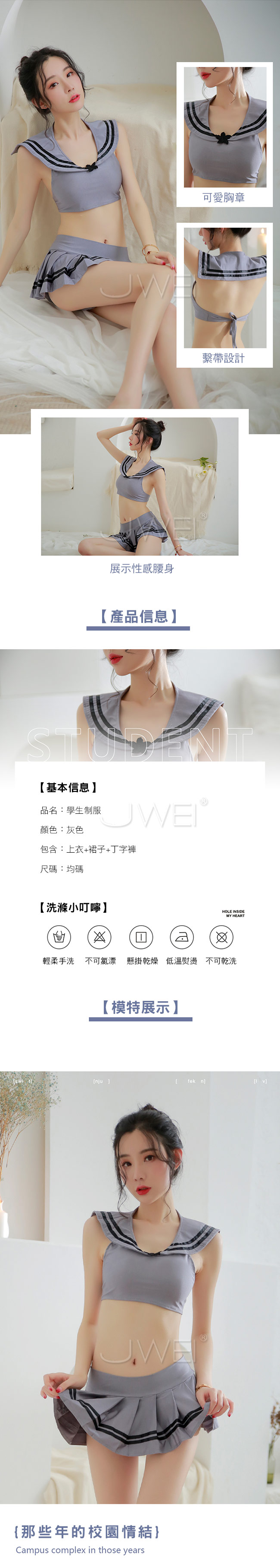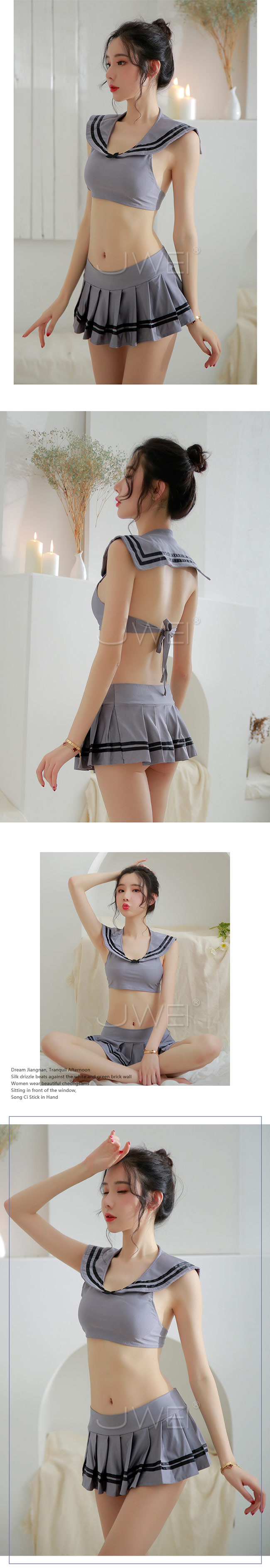 ◇◆熱戀禁區.性感露背綁帶分體式學生制服2件組◆◇