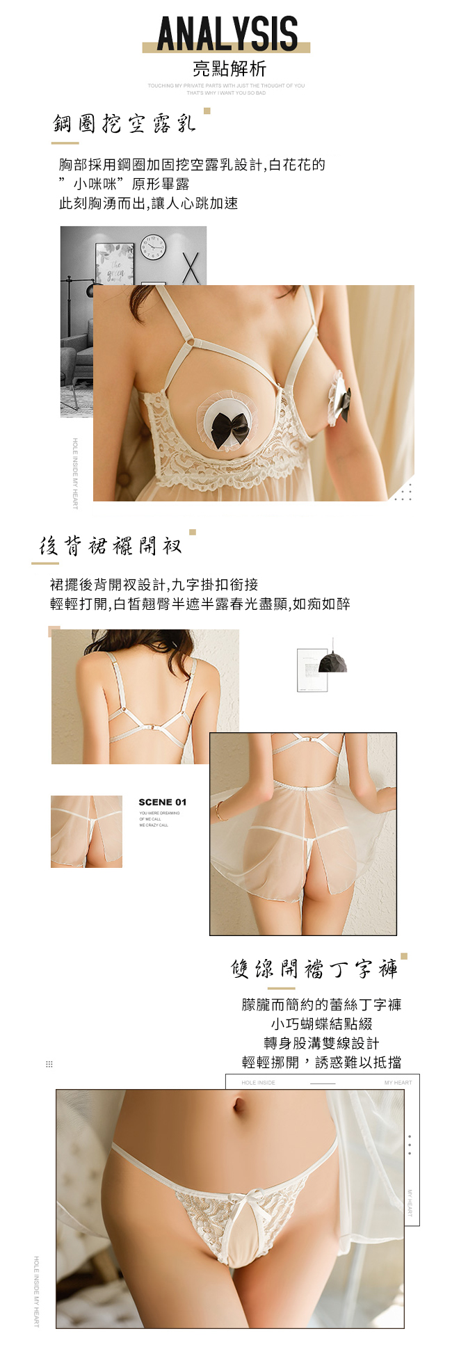 ►您現在的位置:首頁>情趣睡衣!鋼托露乳吊帶後開襟三件組 - 含乳貼﹝白﹞