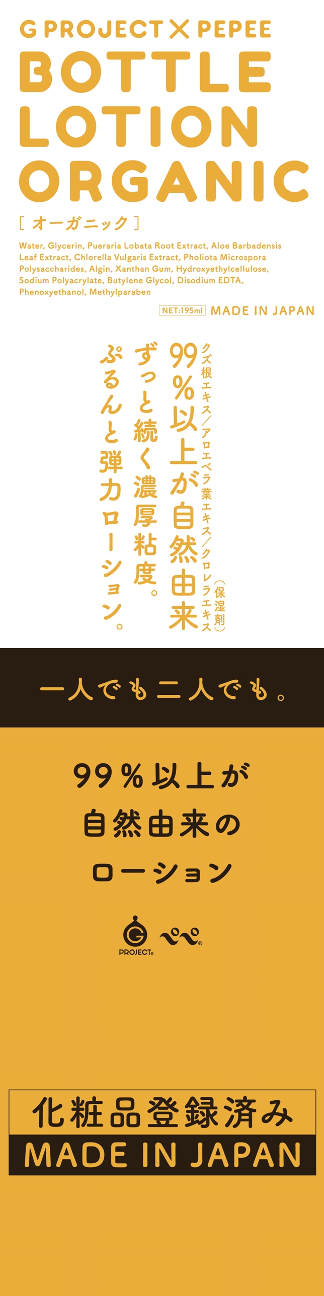 《G PROJECT × PEPEE BOTTLE LOTION ORGANIC [有機潤滑油]》