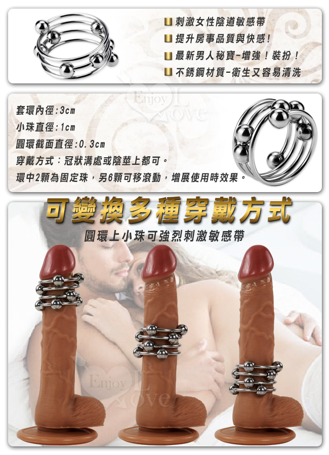 ►您現在的位置:首頁>不銹鋼龜頭冠狀溝加強加粗環 - 8入珠 可移滾動6珠﹝M號 內徑3.2cm﹞男鎖精女刺激