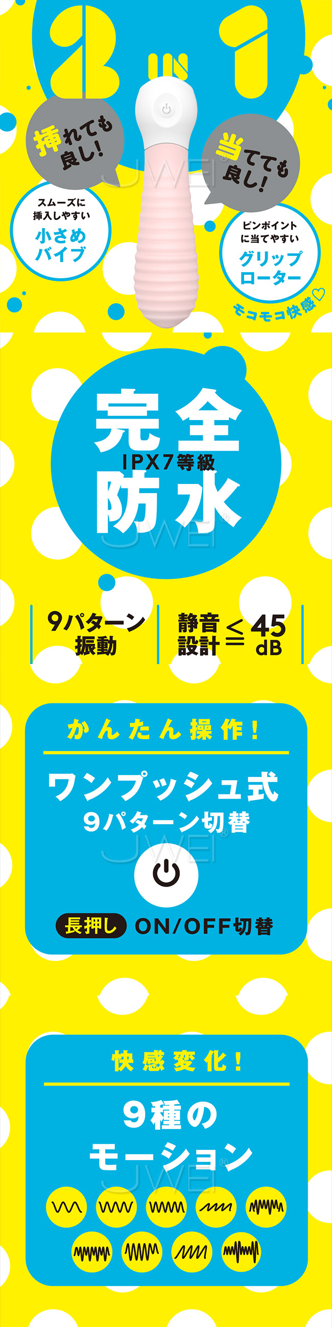 | 日本原裝進口EXE.ROTOR VIBE 9 3檔6頻防水震動按摩棒-粉色