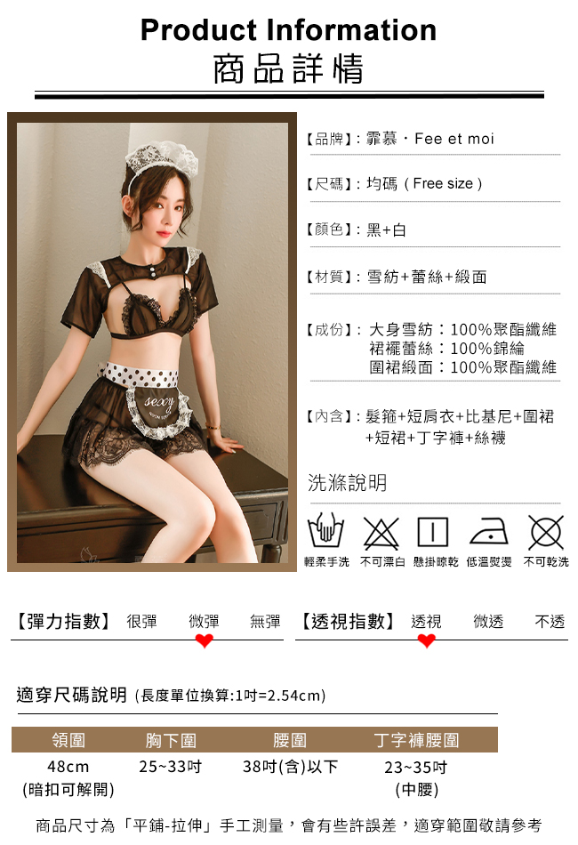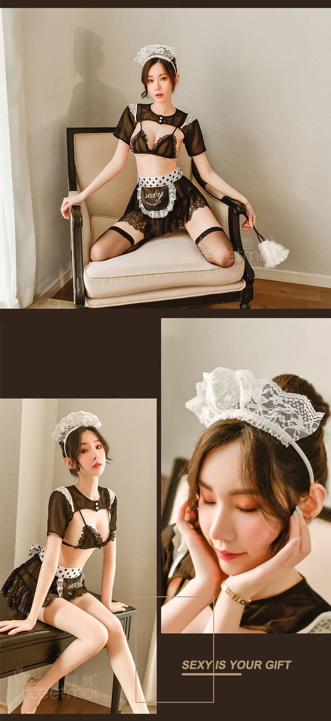 ►您現在的位置:首頁>《FEE ET MOI》女僕角色扮演服!透紗短肩衣睫毛蕾絲拼接波點圍裙七件式套裝