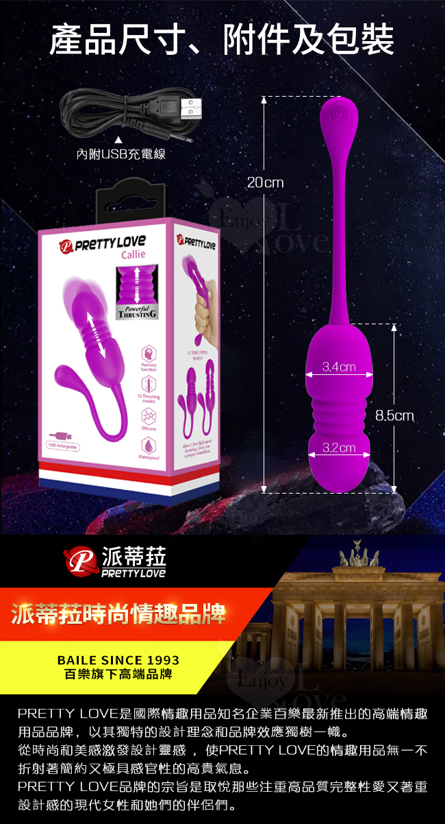 ►您現在的位置:首頁>派蒂菈 ‧ Callieri 卡列里 無線遙控 動感情人雙操控跳蛋﹝12頻伸縮+震動+親膚硅膠+USB便捷充電﹞