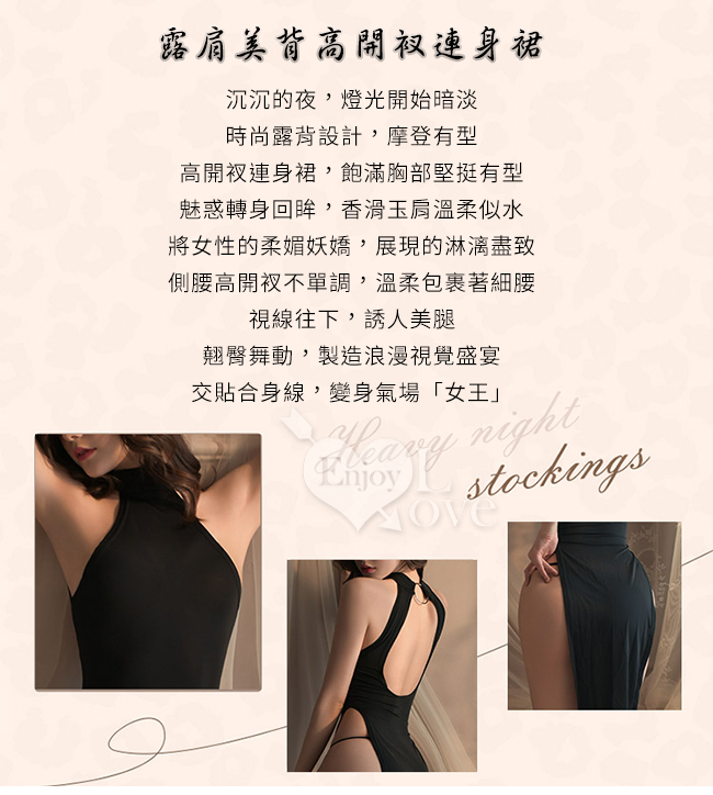 | 情趣睡衣!香滑露肩性感美背兩側高開衩連身裙兩件組