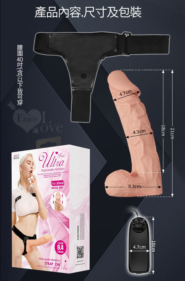 ►您現在的位置:首頁>【BAILE】Ultra Harness 圓潤Q彈微調震動穿戴逼真按摩棒-9.4吋