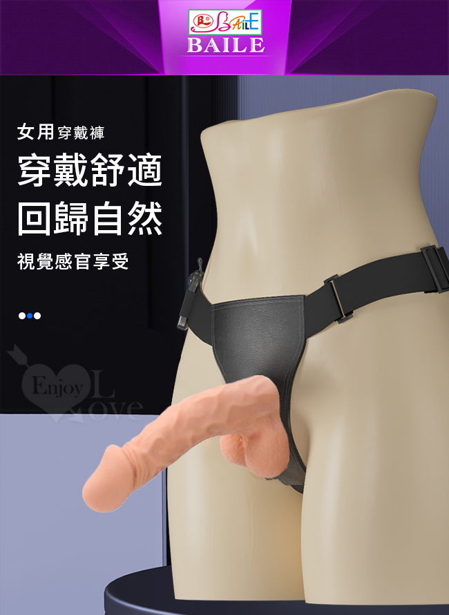 【BAILE】Ultra Harness 圓潤Q彈微調震動穿戴逼真按摩棒-9.4吋