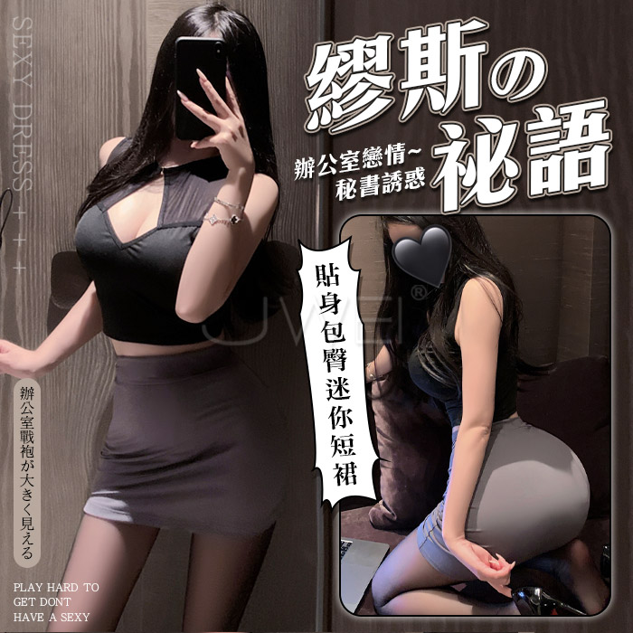 | 火辣秘書.掛脖縷空高開衩分體式秘書套裝3件組(白+紅)