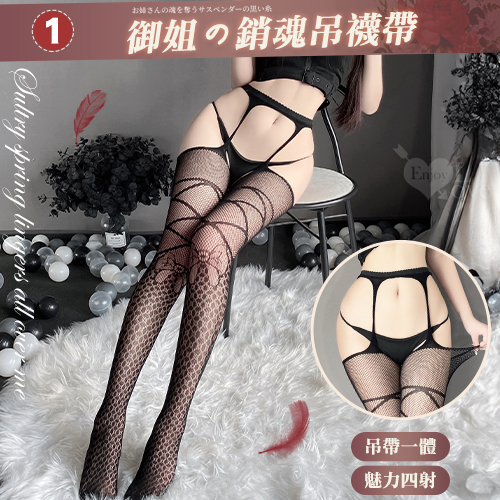 ■內容物:吊襪帶丁字褲x1、大腿蕾絲絲襪x1