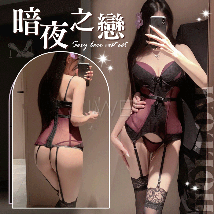 | 午夜蜜語.鏈條牽引蕾絲透視連身衣