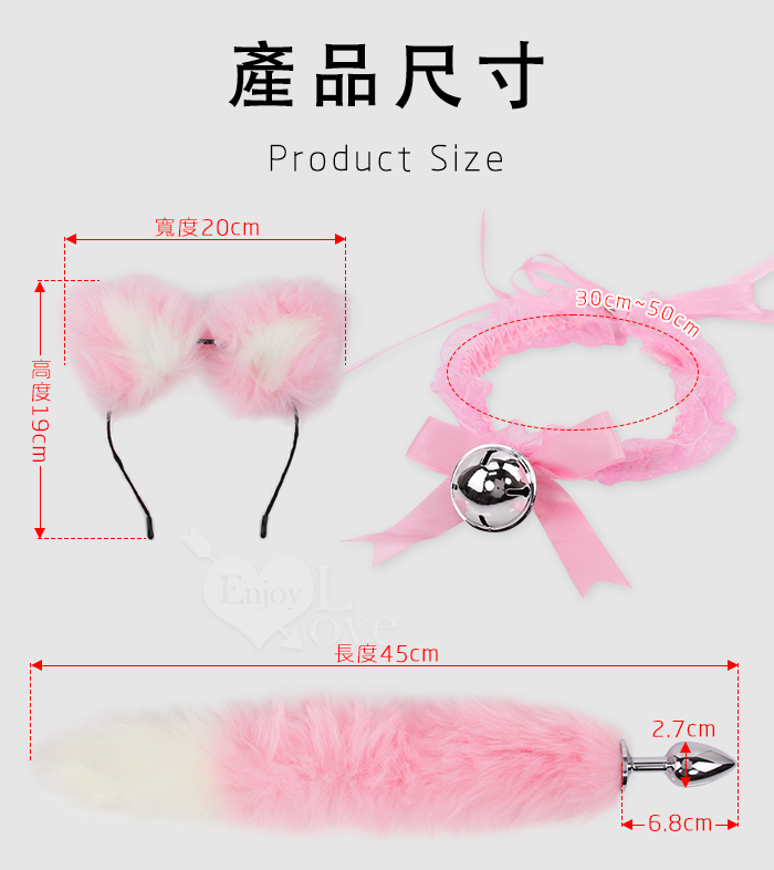 | 魅惑狐姬 ‧ 激性扮演3件組 狐狸尾巴/毛絨髮箍/鈴鐺頸圈﹝粉﹞