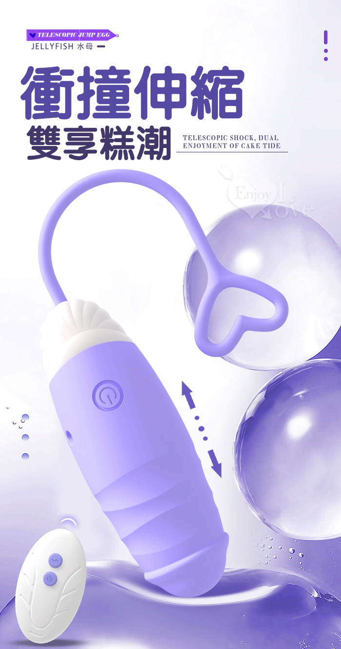 ►您現在的位置:首頁>Jellyfish 水母 伸缩跳蛋 - 無線遙控深入花心深處﹝10頻衝撞伸縮+10震頻﹞淺紫