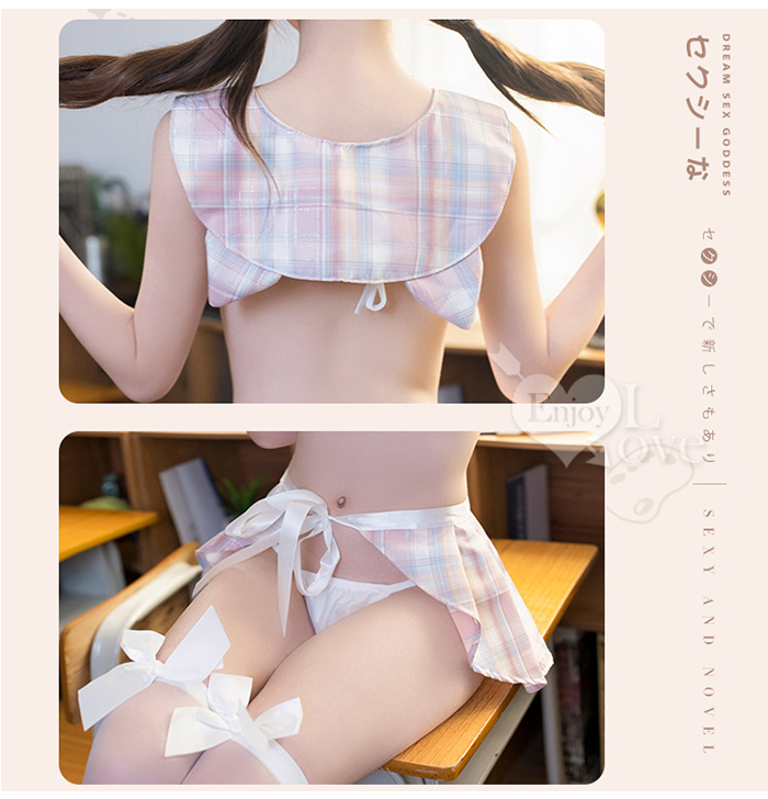 ※ 商品內容:領子+比基尼+綁帶短裙+丁字褲+長筒絲襪。(不含髮箍)