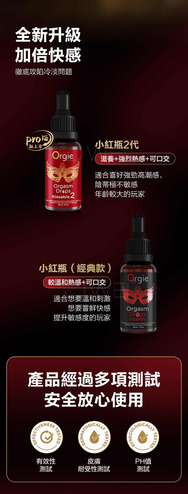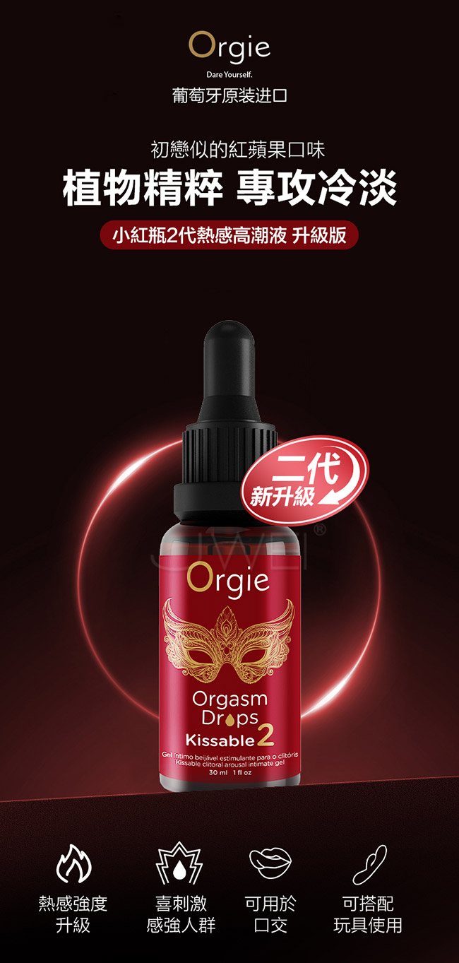葡萄牙Orgie.ORGASM DROPS KISSABLE 2 陰蒂滋養+強烈熱感+可口交 口交凝膠--30ml