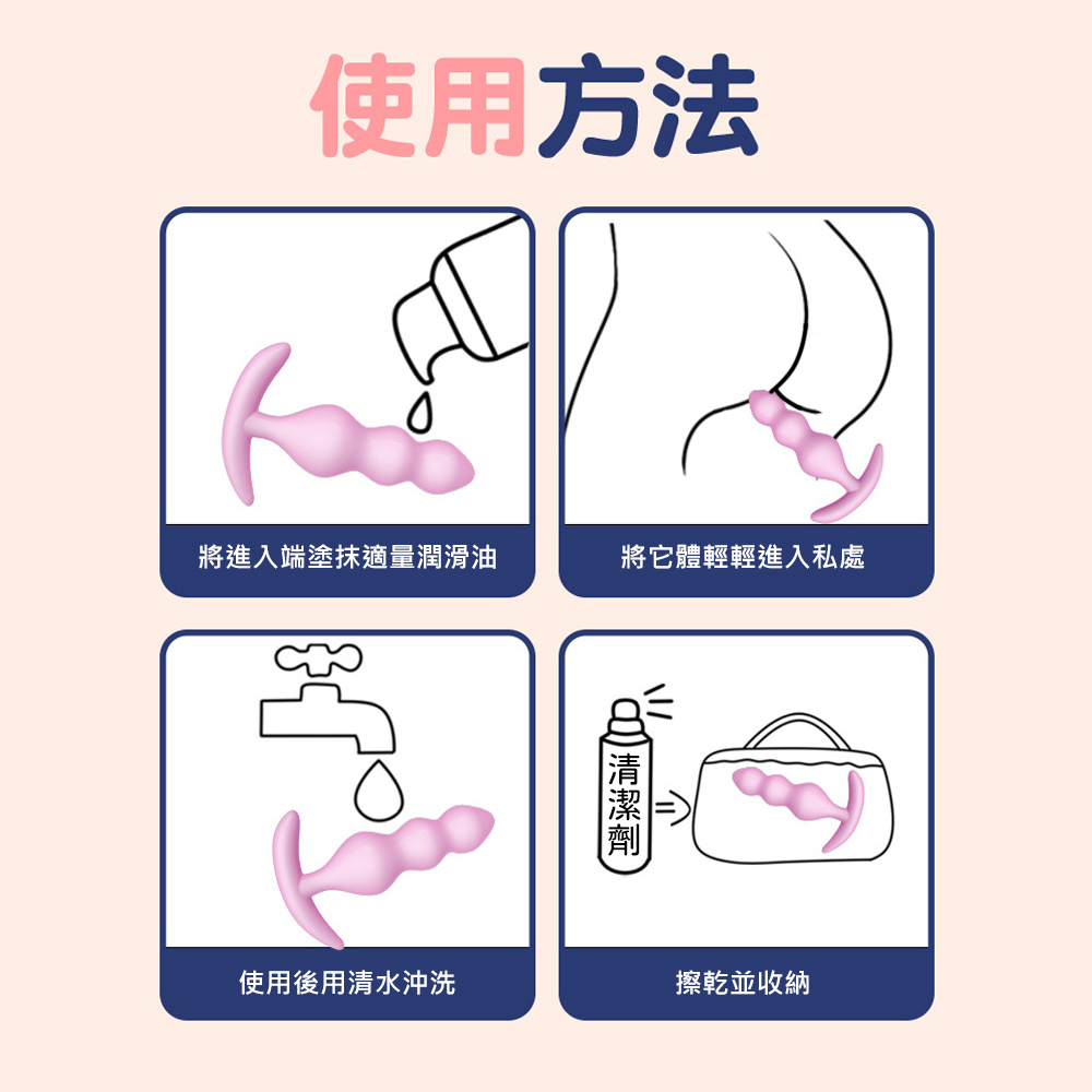 顏色:藍色 種類:後庭肛塞 材質:矽膠 包裝:鋁膜袋包裝 產地:大陸製 商品尺寸:長8.2cm、寬5.5cm、直徑2.1~2.5cm、重量20g 注意事項 1、本商品僅供自愛與挑逗使用,使用前後請注意清潔衛生 2、請務必在安全、自願、愉悅的前提下謹慎使用 清洗注意事項 1、本商品使用前以中性清潔劑清洗,切勿以揮發性之清潔劑擦拭 2、清洗時切勿直接沖洗開關或電源之部位,以免發生短路而無法使用 收納注意事項 1、本商品請收納於陰涼之處所,避免陽光直接曝曬、高溫