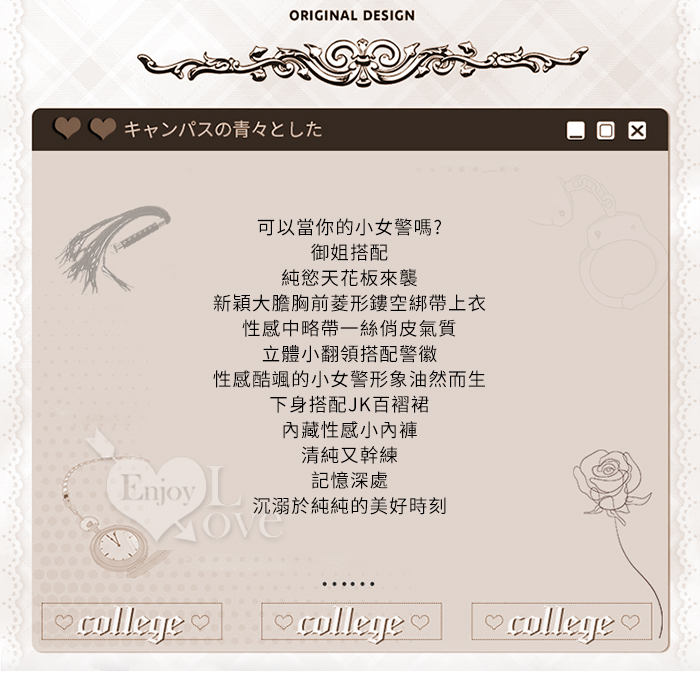 ※ 商品內容:上衣+短裙+丁字褲。(不含帽子、網襪、模特項鍊)