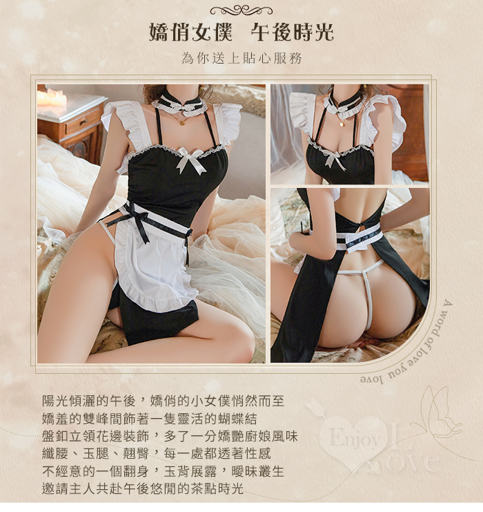 | 女僕角色扮演服!立領盤釦荷葉邊香肩側高衩後開襟美臀四件式套裝﹝黑﹞