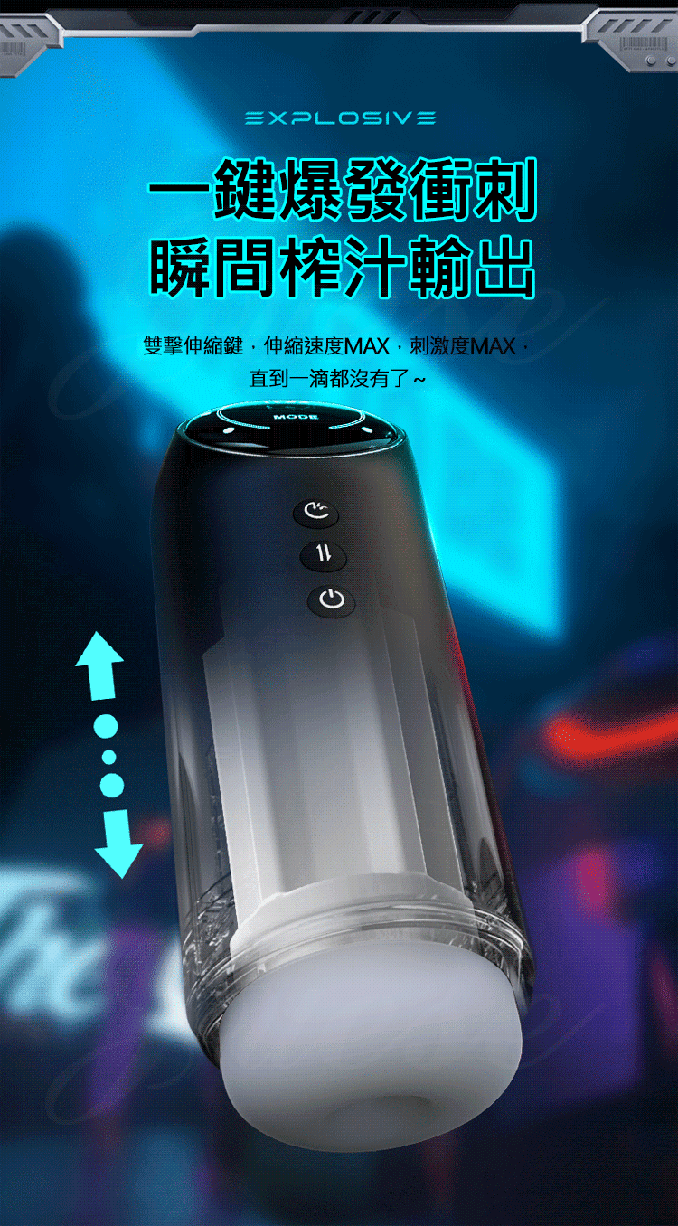 雙擊伸縮鍵,伸縮速度max,刺激度max,直到一滴都沒有了~渦流超吮吸,吸住不放很刺激。
