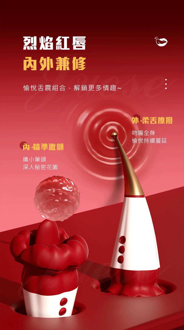 | 烈焰紅唇二代 10段變頻絲滑舌舔震動口愛點潮筆
