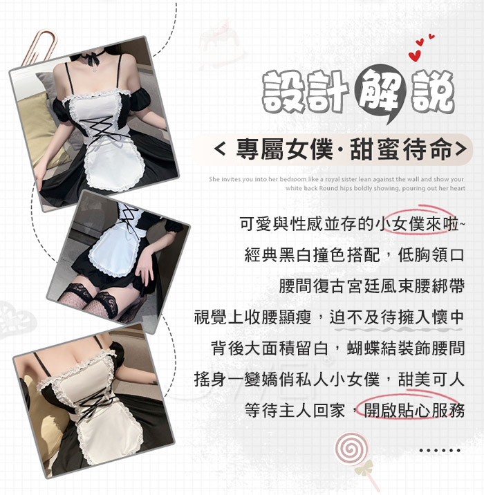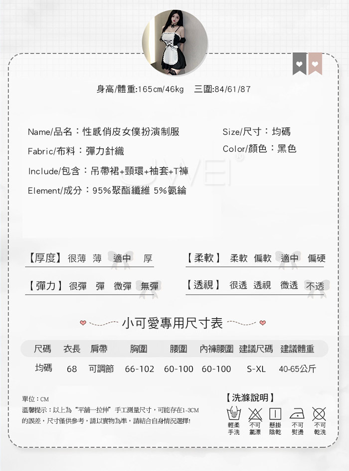 ■內容物:吊帶裙x1、頸環x1、袖套x2、T褲x1(長筒絲襪另選購)