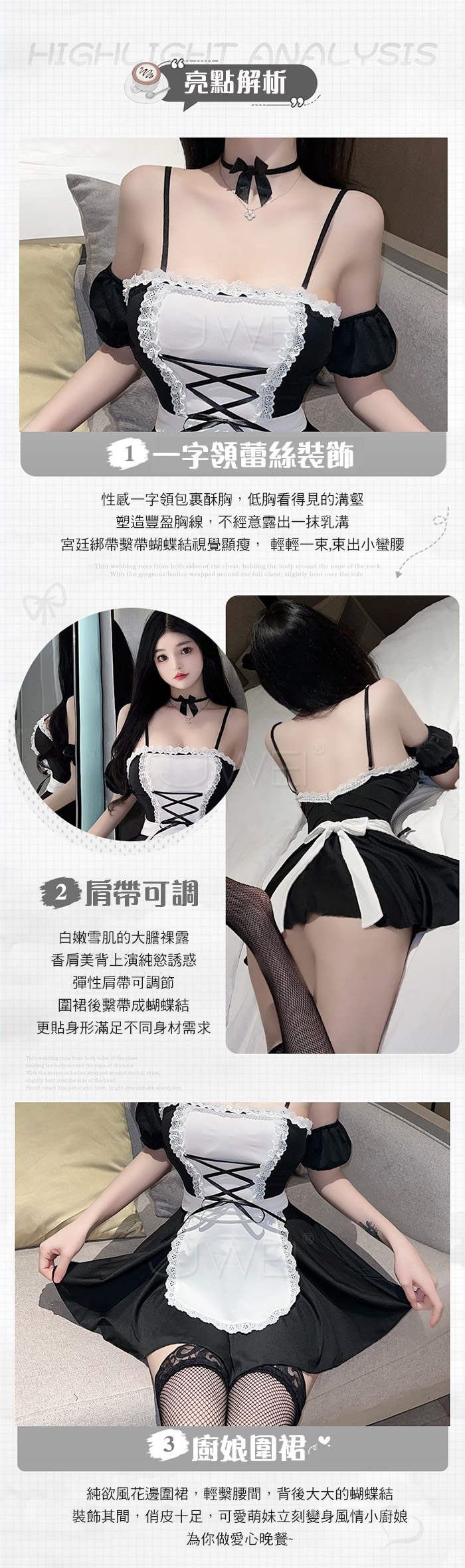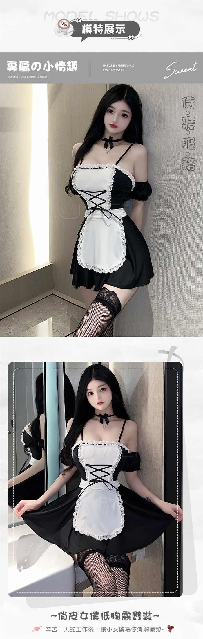 ◇◆風情小廚娘.性感一字領俏皮女僕扮演制服4件組◆◇