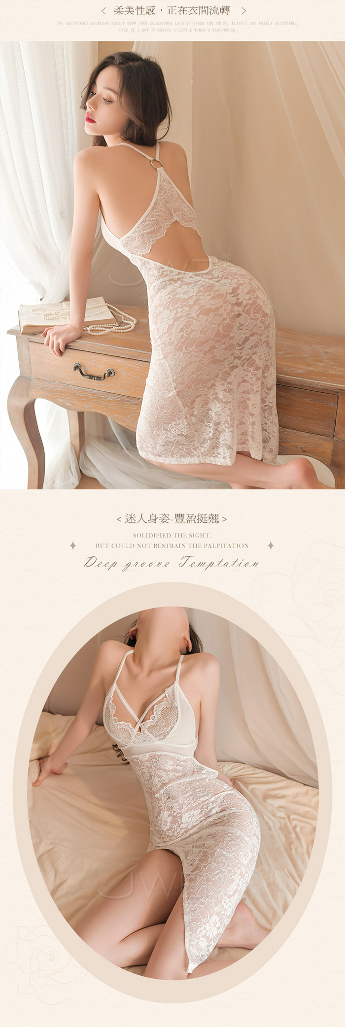►您現在的位置:首頁>偷心威士忌.性感蕾絲透膚腰間側高開衩連身裙2件組(白色)