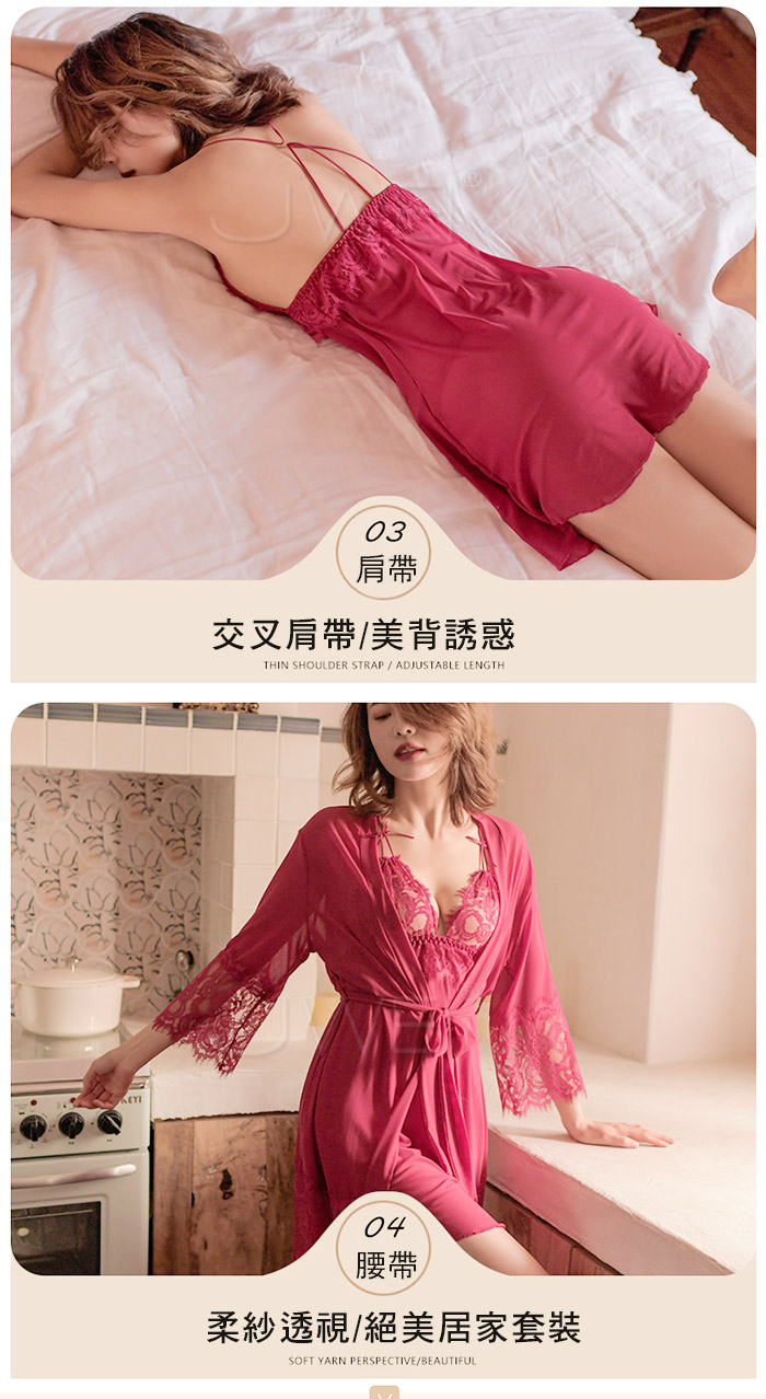 ■內容物:睡袍x1、腰帶x1、睡裙x1、內褲x1