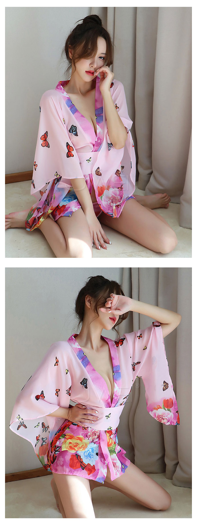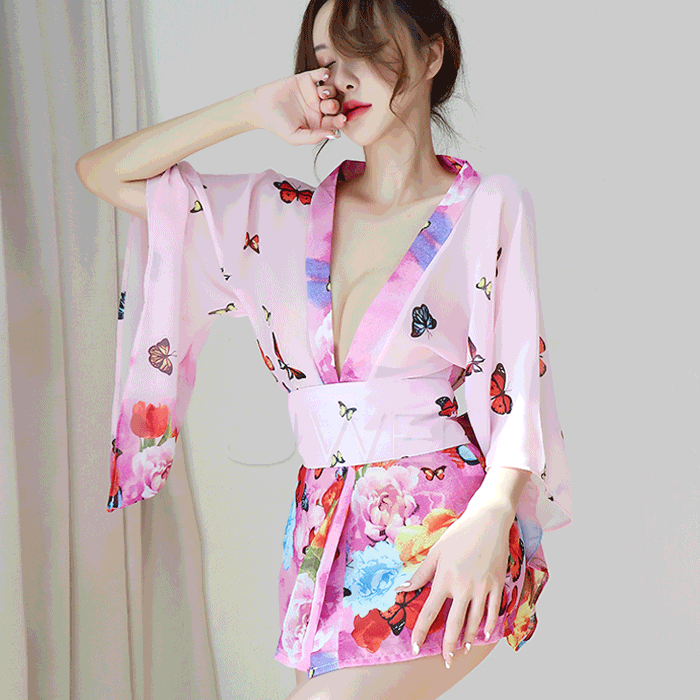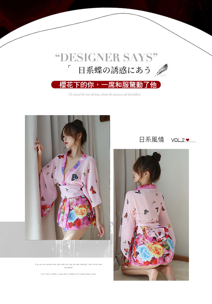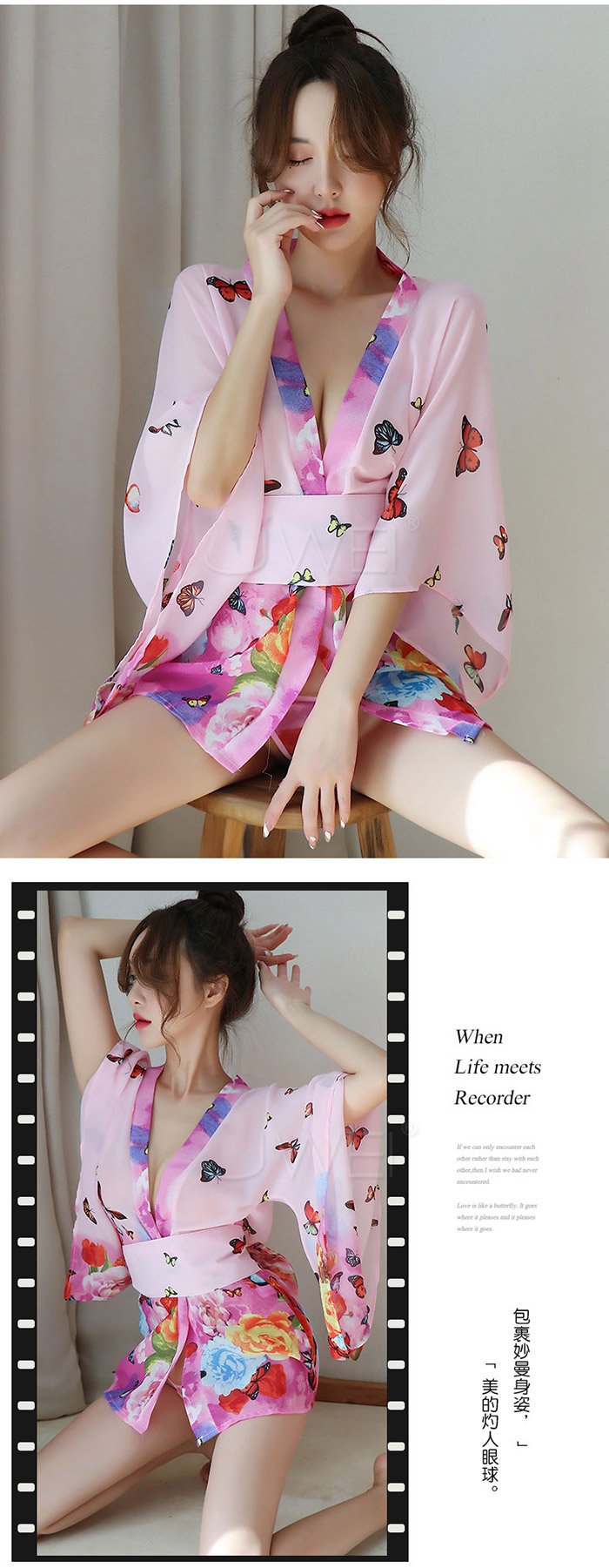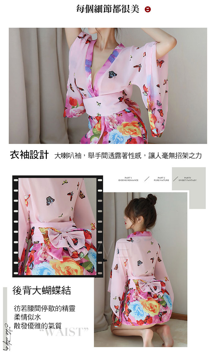 ►您現在的位置:首頁>幻蝶誘夢.性感誘惑開襟V領印花日式和服套裝3件組(黑)