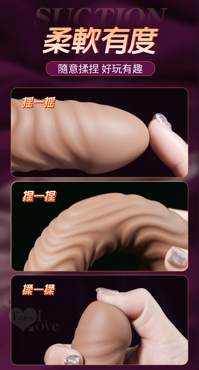 Enjoy Love ‧ 真肉感B 凹凸大環紋刮陰 液態矽膠軟Q肉彈加固吸盤老二棒﹝淺膚﹞任揉任彎 永不變形