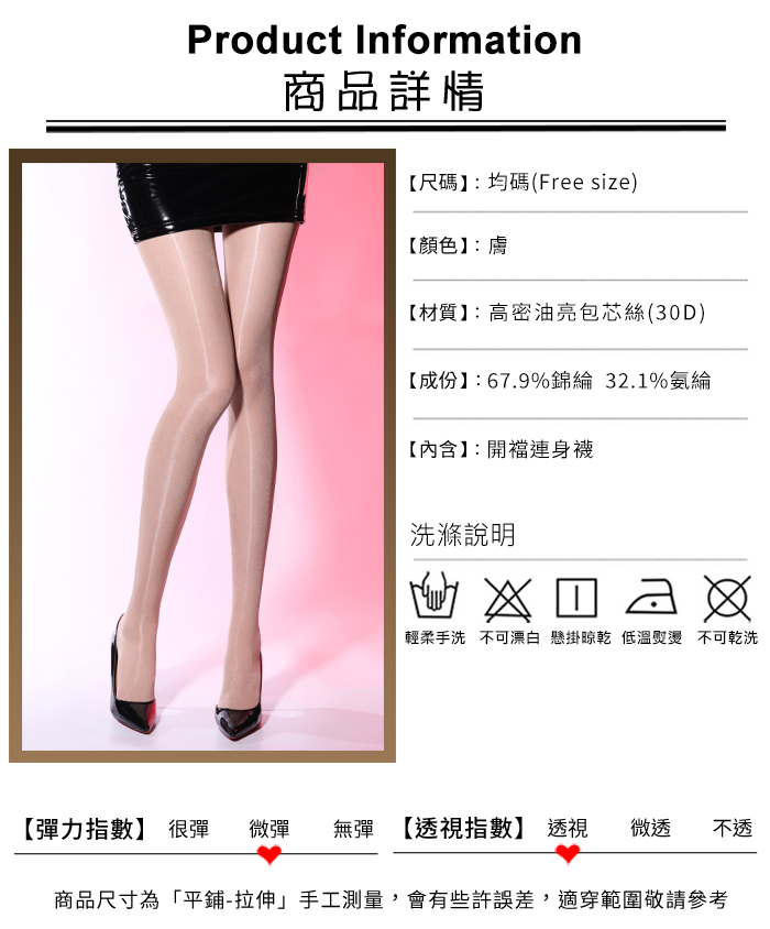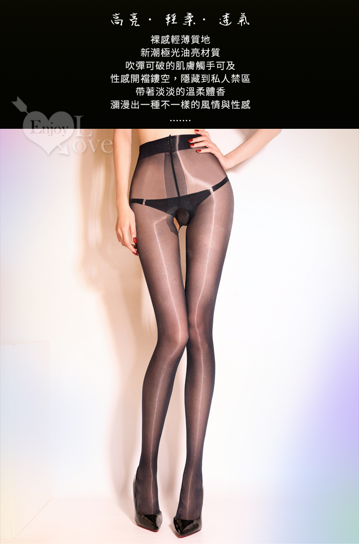 光澤裸感輕薄高油亮免脫開襠連身襪﹝黑﹞