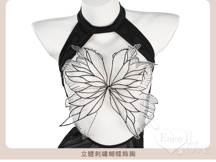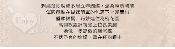 情趣睡衣!刺繡薄紗燕尾蝶美胸高衩連身裙含襪三件組